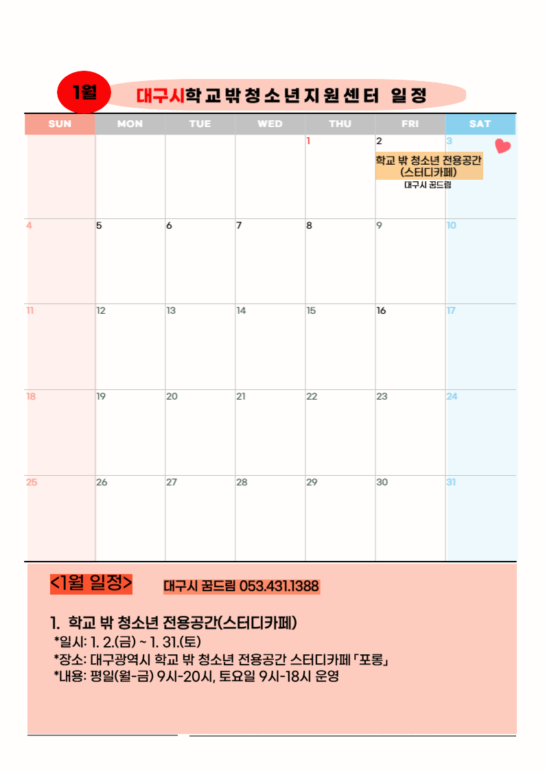 대구지역 꿈드림 위치/연락처